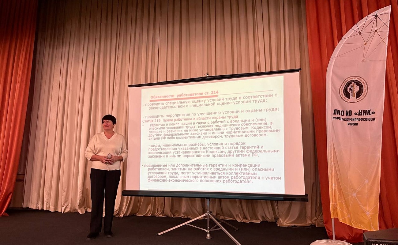 Мероприятие было организовано для уполномоченных лиц по охране труда ППО АО «ННК» Нефтегазстройпрофсоюза России и посвящено теме «Порядок предоставления гарантий и компенсаций за вредные условия труда по результатам специальной оценки условий труда».