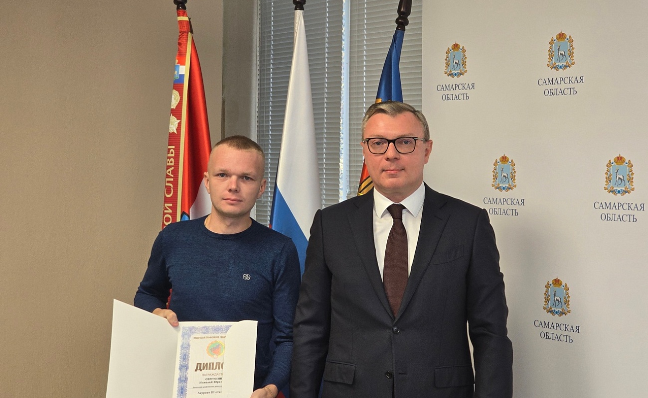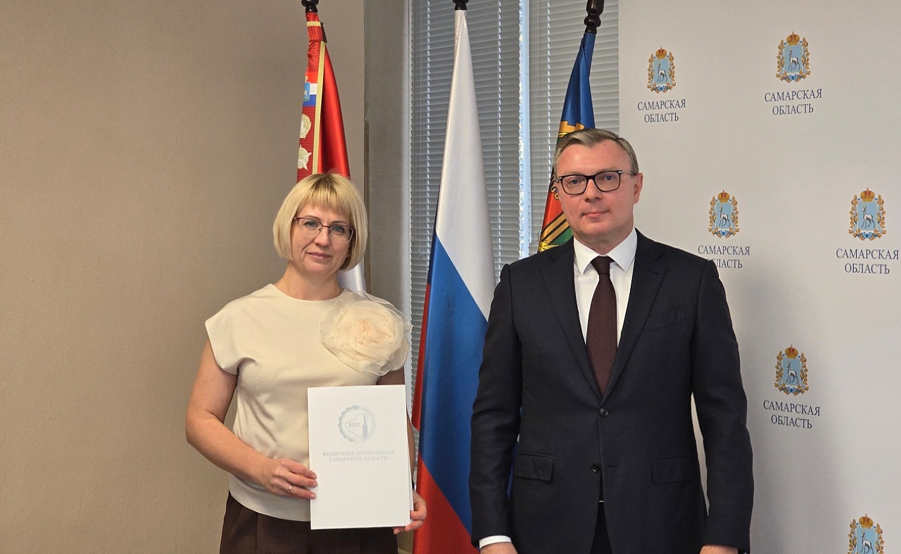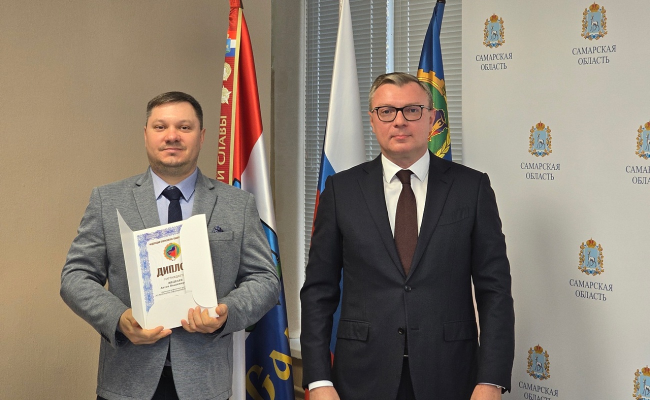 Председатель Федерации профсоюзов Самарской области Колесников Дмитрий Геннадьевич вручил дипломы победителям:
