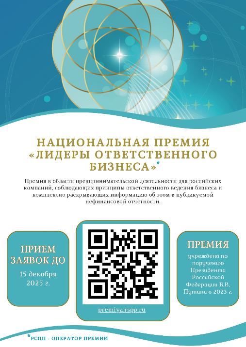 Оператором Премии выступает Российский союз промышленников и предпринимателей. Заявки принимаются до 15 декабря на сайте: premiya.rspp.ru/