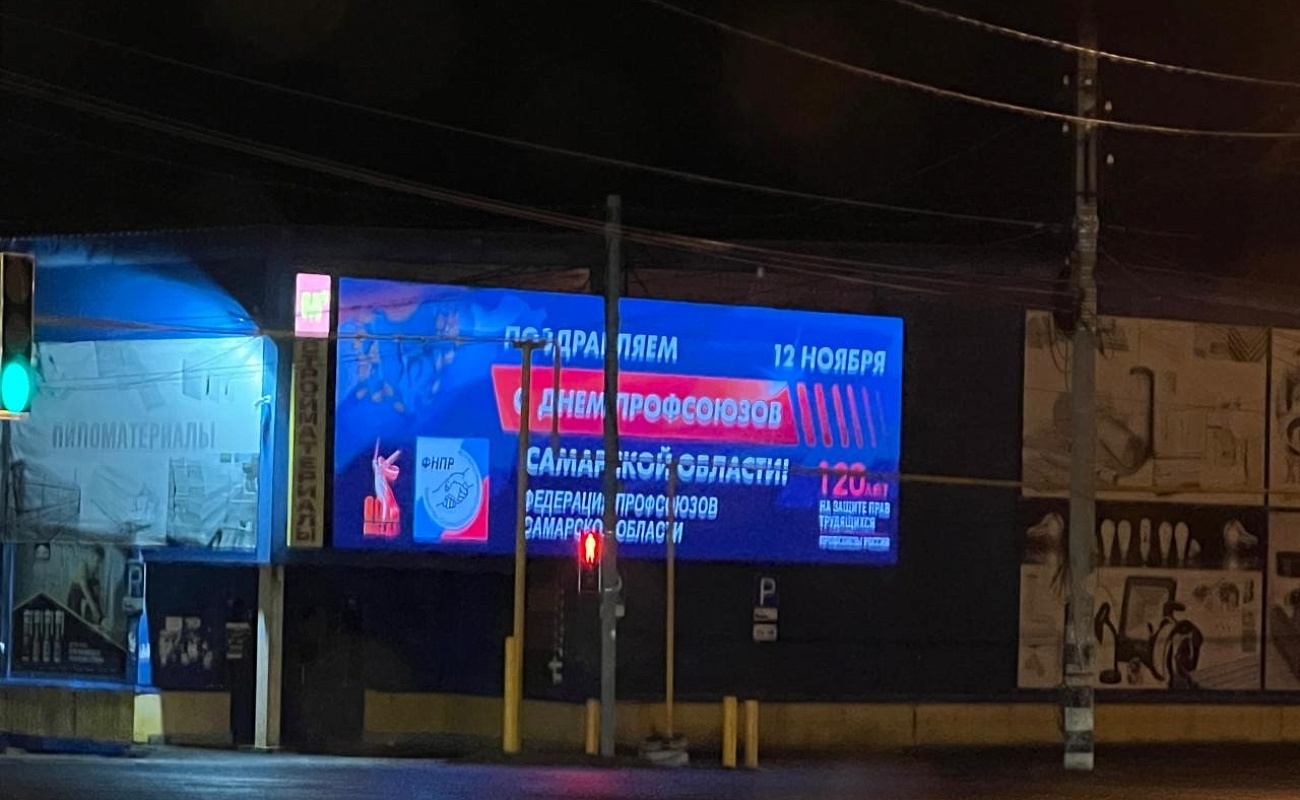 На щитах, медиа-экранах городских объектов, остановках общественного транспорта, мониторах в вагонах метро, трамваях и автобусах можно будет увидеть поздравления, посвящённые Дню профсоюзов Самарской области.